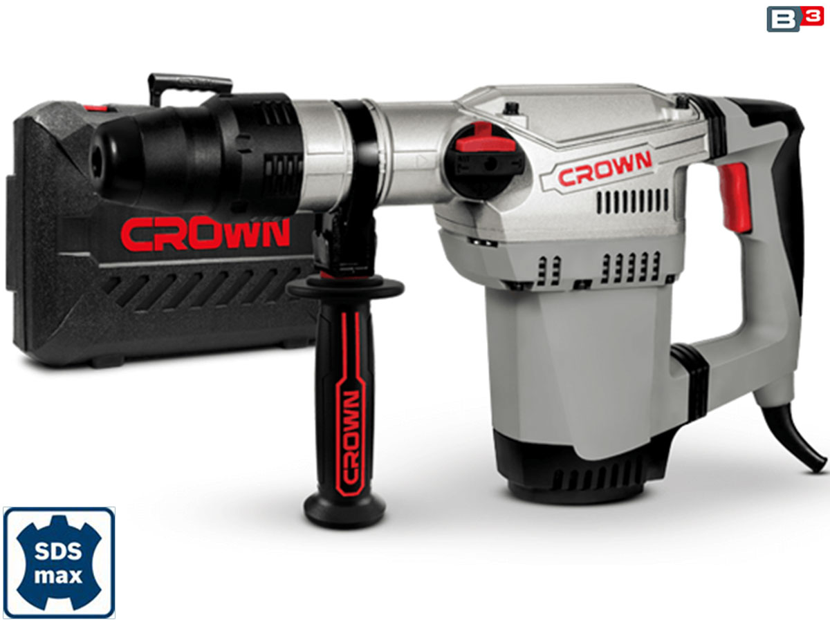 تعمل مثاقب كراون الدورانية القوية بدون أي جهد حيث تضمن قوة الطرق الكبيرة 10 جول للطرقه الواحده , ظرف SDS-Max • وضعان للوظائف (الحفر بالطرق / الحفر بالإزميل) • نظام مضاد للاهتزازات • قابض أمان • مؤشر ضوئي للطاقة • مقبض مريح